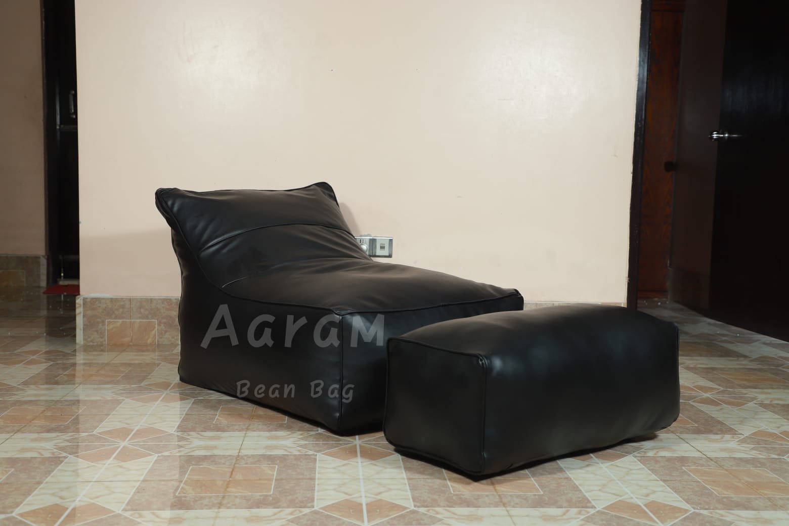 Faux Leather Lounge Chair Bean Bag with Footrest